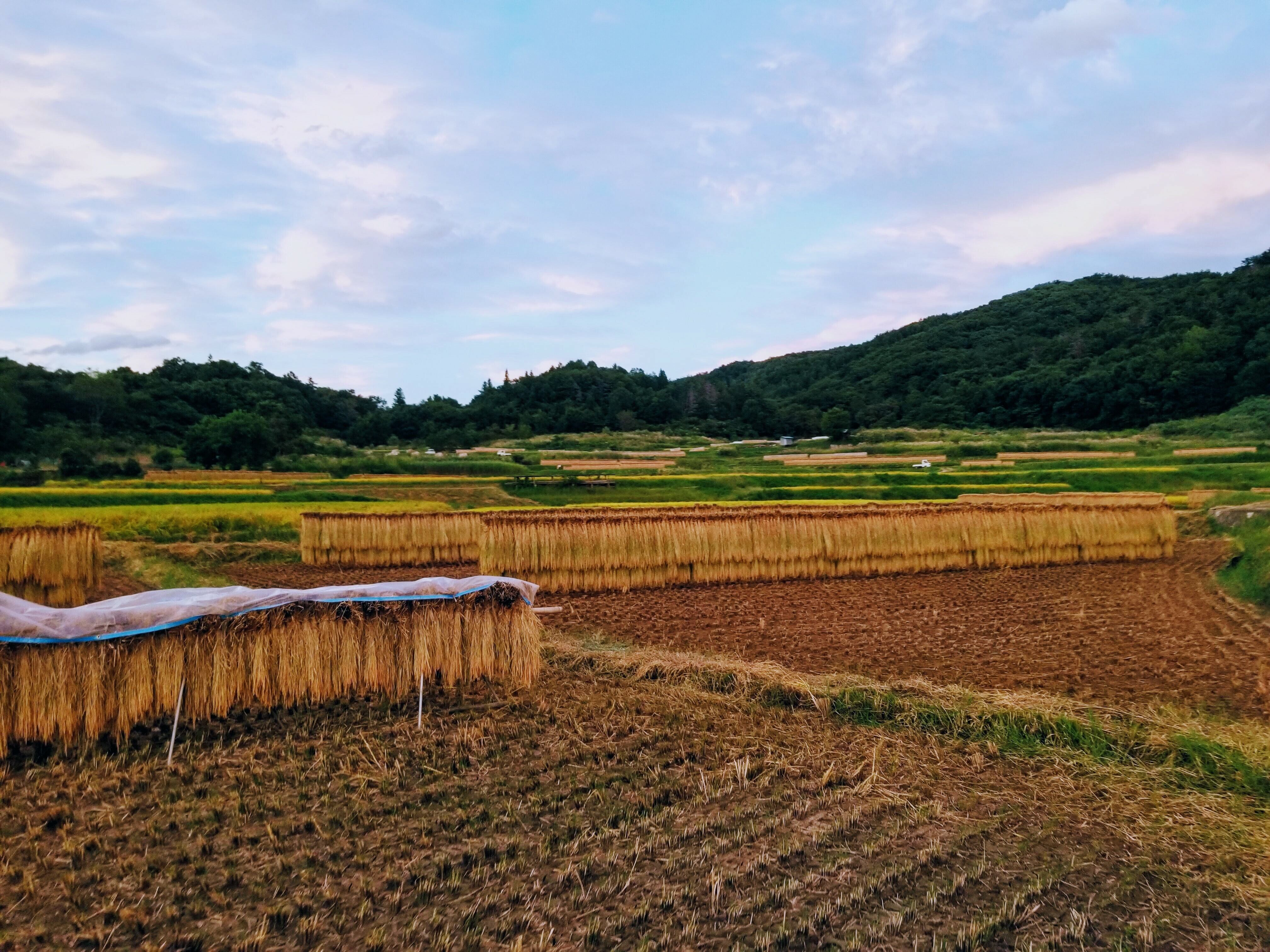 信州長野県長野市の信里地区ではぜかけ(はざかけ)で作られたお米です。